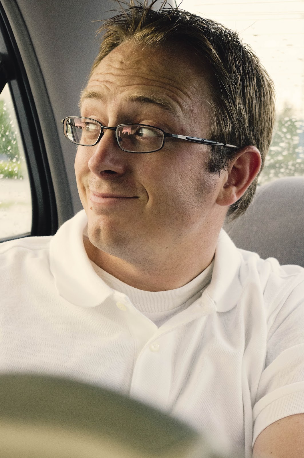 So we decided we might as well take pictures in the car: